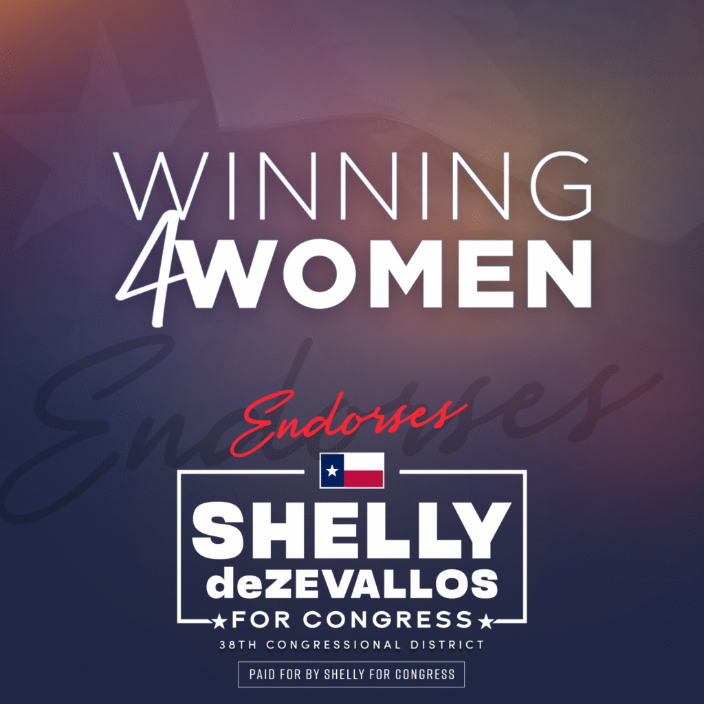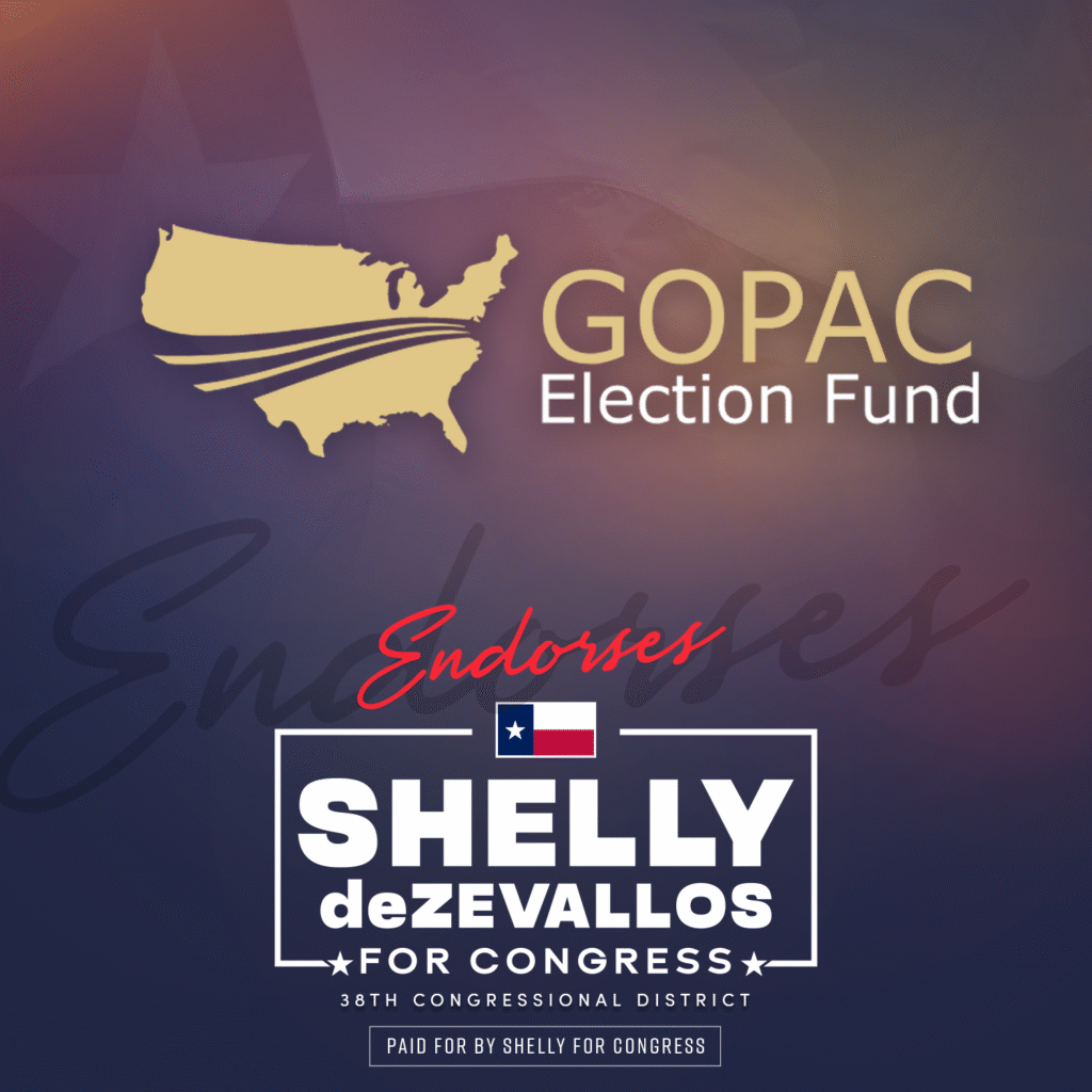 “We endorse Shelly deZevallos for Texas’ 38th U.S. House District! As a business & aviation leader, deZevallos will bring a taxpayer-first approach to government. She believes D.C. must live within its means & has the private sector experience balancing budgets to make it happen.”